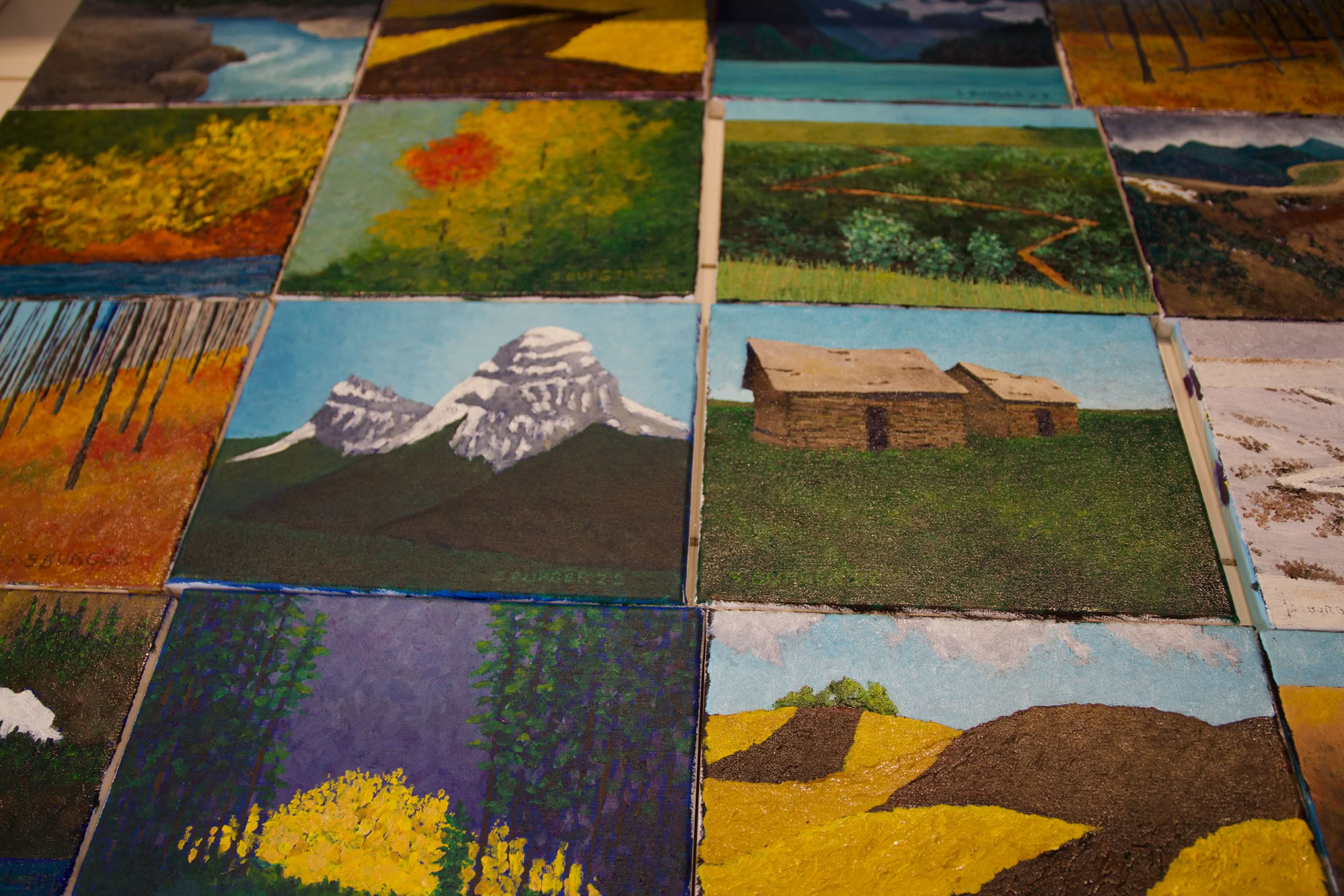 Detail from a grid of twenty four 8”X10” oil paintings being organised for an exhibition. Check the oil painting tab to see individual pieces. Contact me by email for inquires