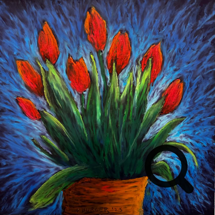 25-034 Tulip Vase, Oil Pastel